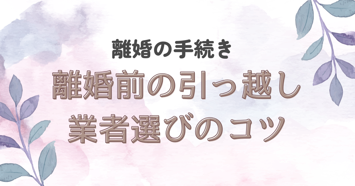 離婚前の引っ越しは、普通の引っ越しとは違い、心理的にも手続き的にもハードルが高いと感じました。